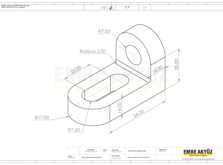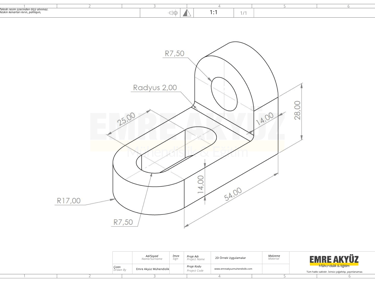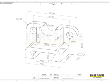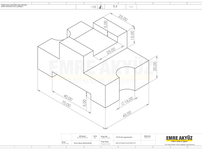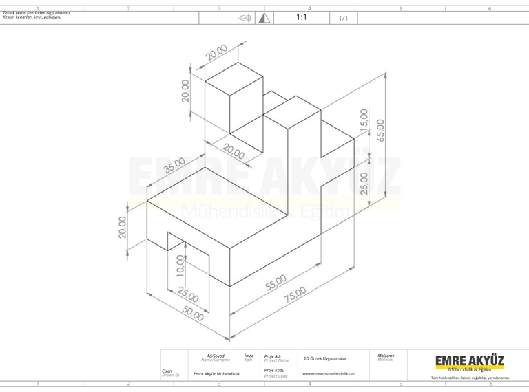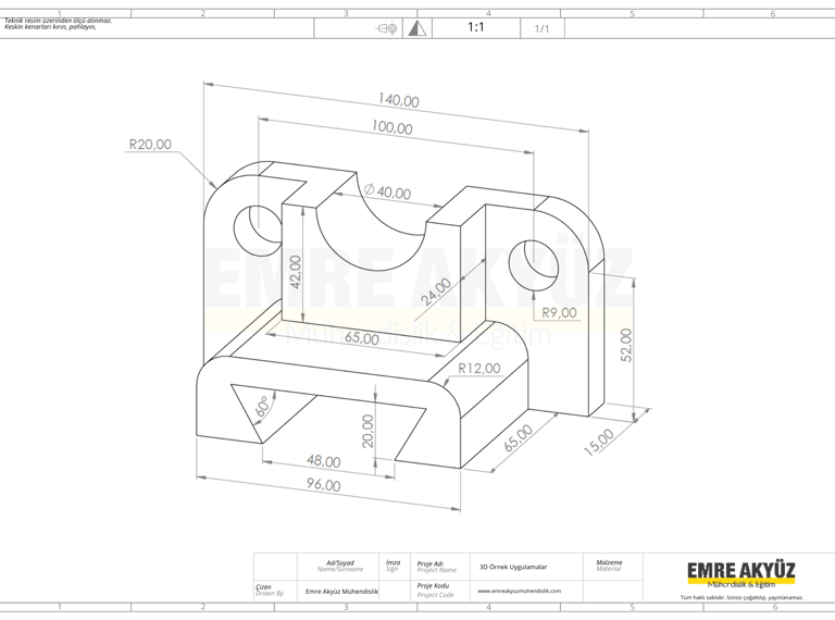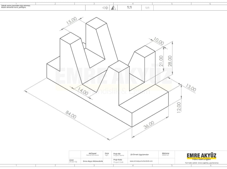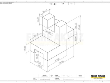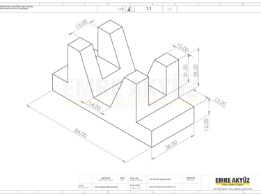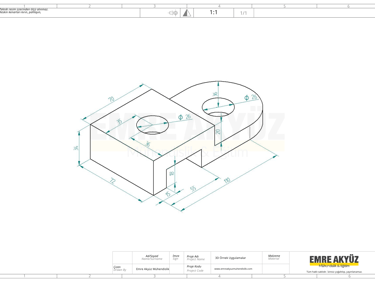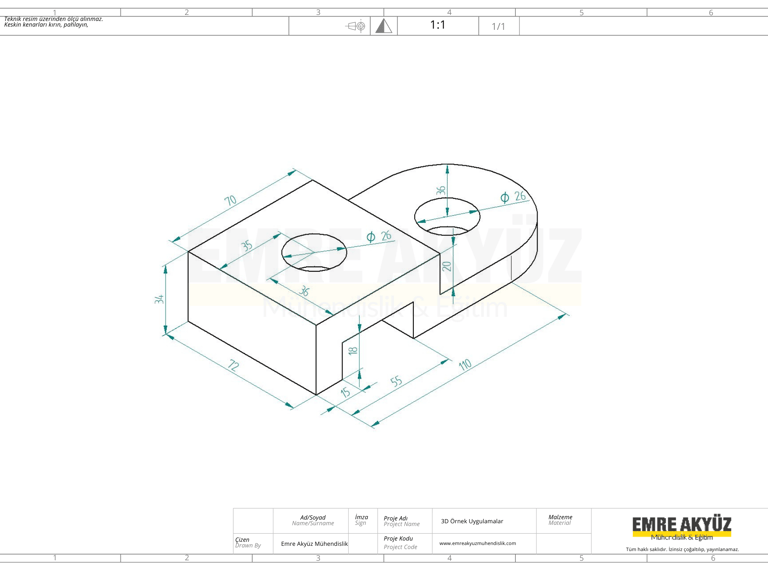 Bu 3D (3 Boyutlu) teknik resim örneğiyle ilk katı modelinizi oluşturabilirsiniz. Autocad, SolidWorks gibi yazılımlarda çizime nereden başlayacağınıza dikkat ediniz.