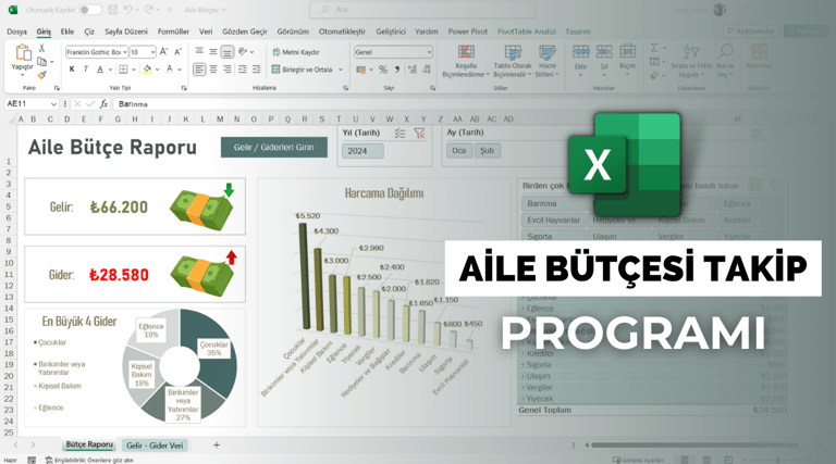 Excel Aile Bütçesi Takip Programı | DashBoard ve Grafikler